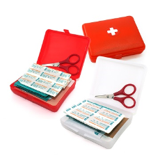 This handy emergency first aid kit includes 1 scissor, 3 antiseptic cleansing wipe, 1 mosquito patch, 2 sterile gauze swab, 5 rectangular plasters and 1 patch plaster.